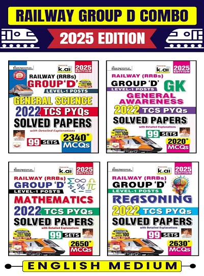 Railway Group D General Science + General Awareness + Maths + Reasoning TCS PYQs Solved Paper 2025 Edition (English Medium) (Railway Group D Combo K015)