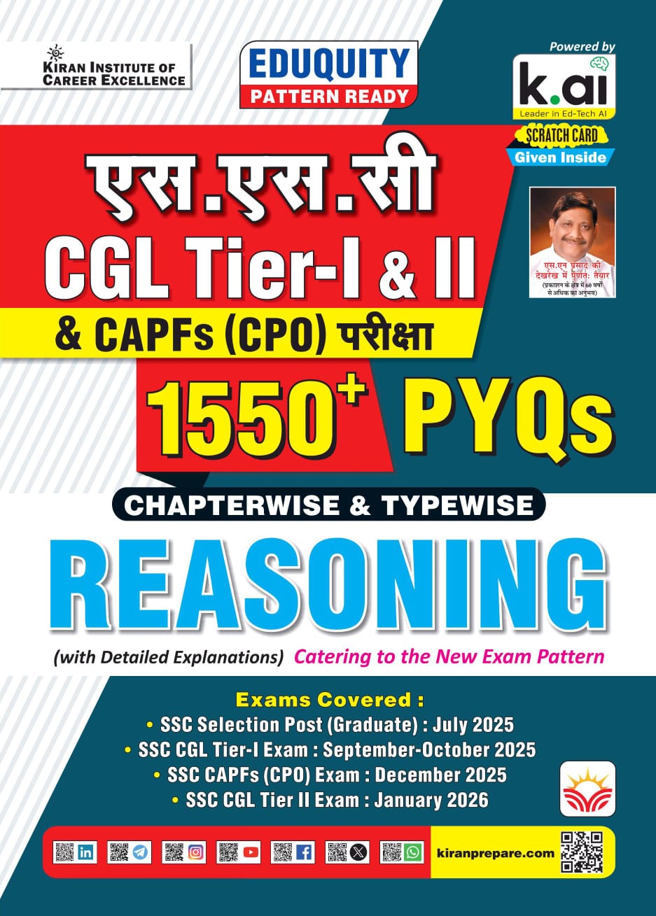 SSC CGL Tier 1 & Tier 2 & CPO Reasoning Chapterwise & Typewise 1550+ PYQs Only Eduquity Pattern Ready PYQs 2026 Edition (Hindi Medium) (5961)
