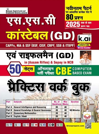 SSC Constable GD and Rifleman GD Assam Rifles and Sepoy in NCB Online Exam (CBE) Practice Work Book (Hindi Medium) (5548)