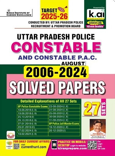 UP Police Constable and PAC and Jail Warder 2006 To 2024 August Solved Papers Total 27 PYQs Sets 2025 Edition (English Medium) (5360)